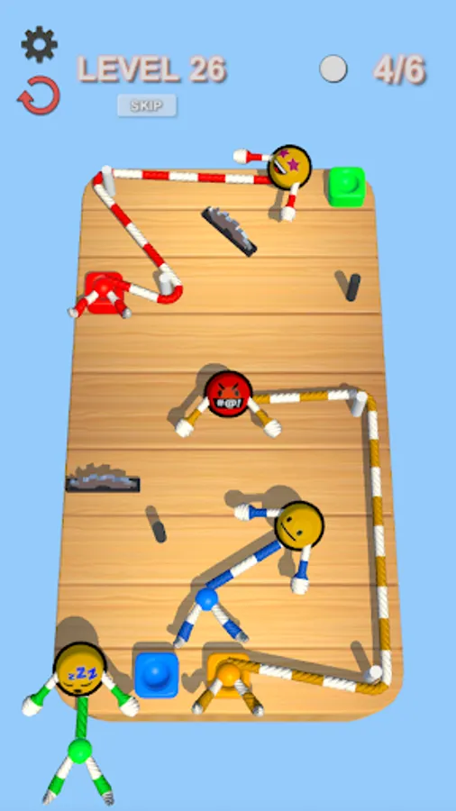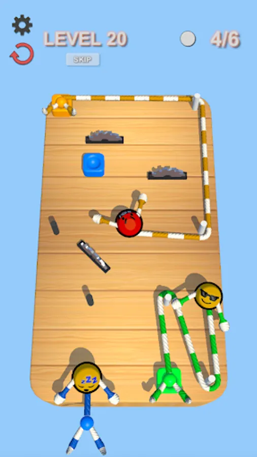 Hey there, wanderer! You should just connect colour Rope Guys with right colour pots! Its so easy! But if you want to beat a high score, you should touch as much pins as possible with your Rope Guys. Don't be mistaken - ropes cannot intersect with each other and don't forget to avoid saws! Are you ready for a brainstorm? Let's go!