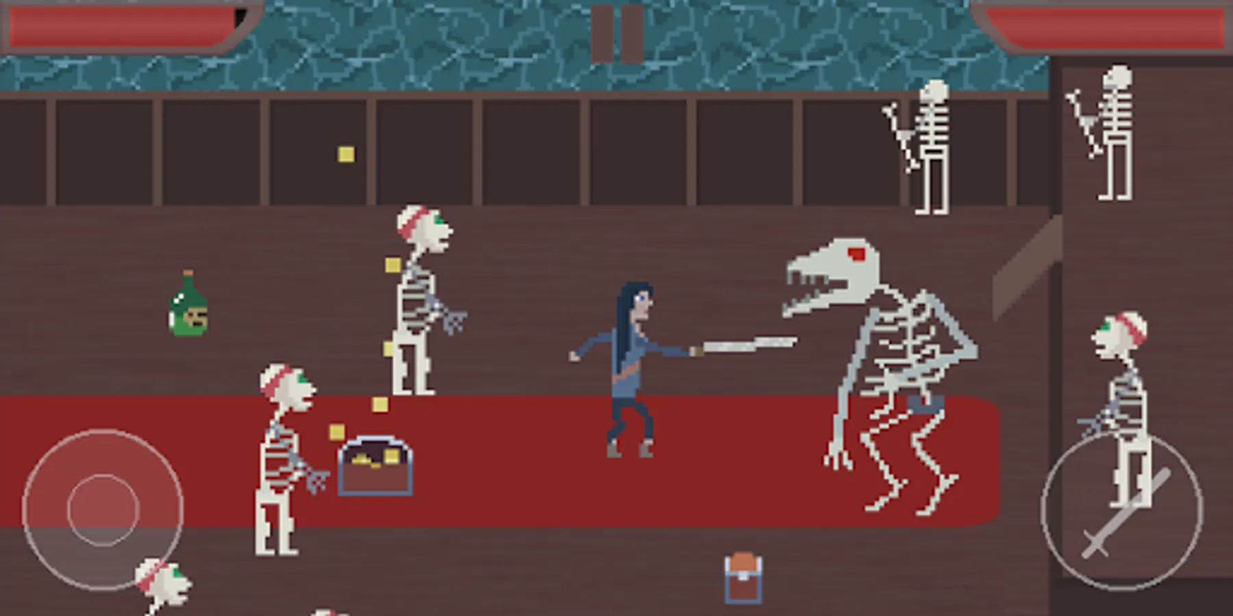Go on an epic adventure on the Skeleton island! You have to: sail on ships and boats, open the chests with the gold, of course drink rum and fight with skeletons! Participate in hardcore battles, duels on the mast and explore the island of skeletons! Improve pirate's skills and unlock new ones. In the game there are several pirates: from the girl-viking to the "Black Beard" Edward Tich. Kill the skeletons and get on the leaderboard. This game is suitable for fans of RPG and people interested in pirates, even for children.