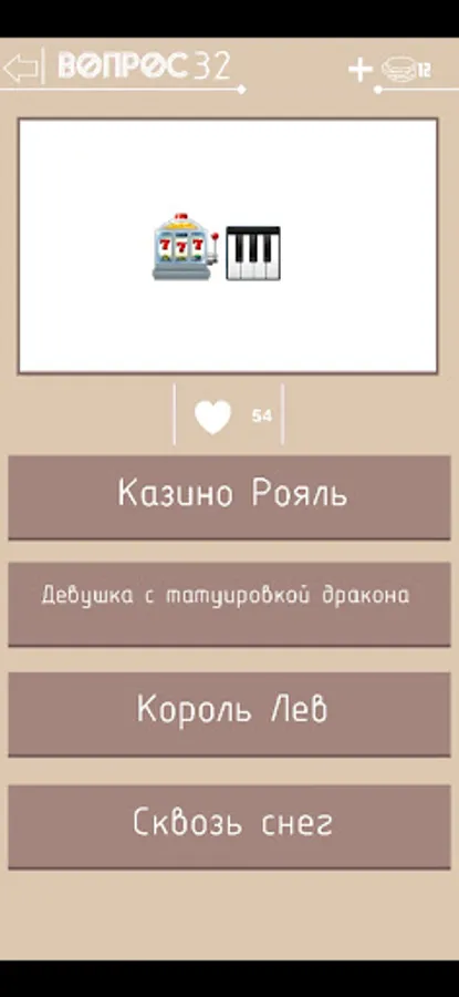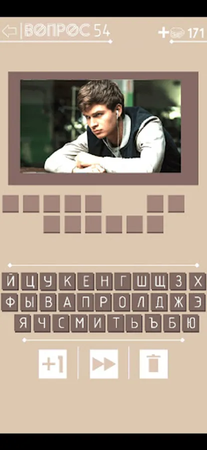 In the "Word by spell" mode, you need to write the name of the hidden movie, using the proposed keyboard. There are three types of hints in this mode.