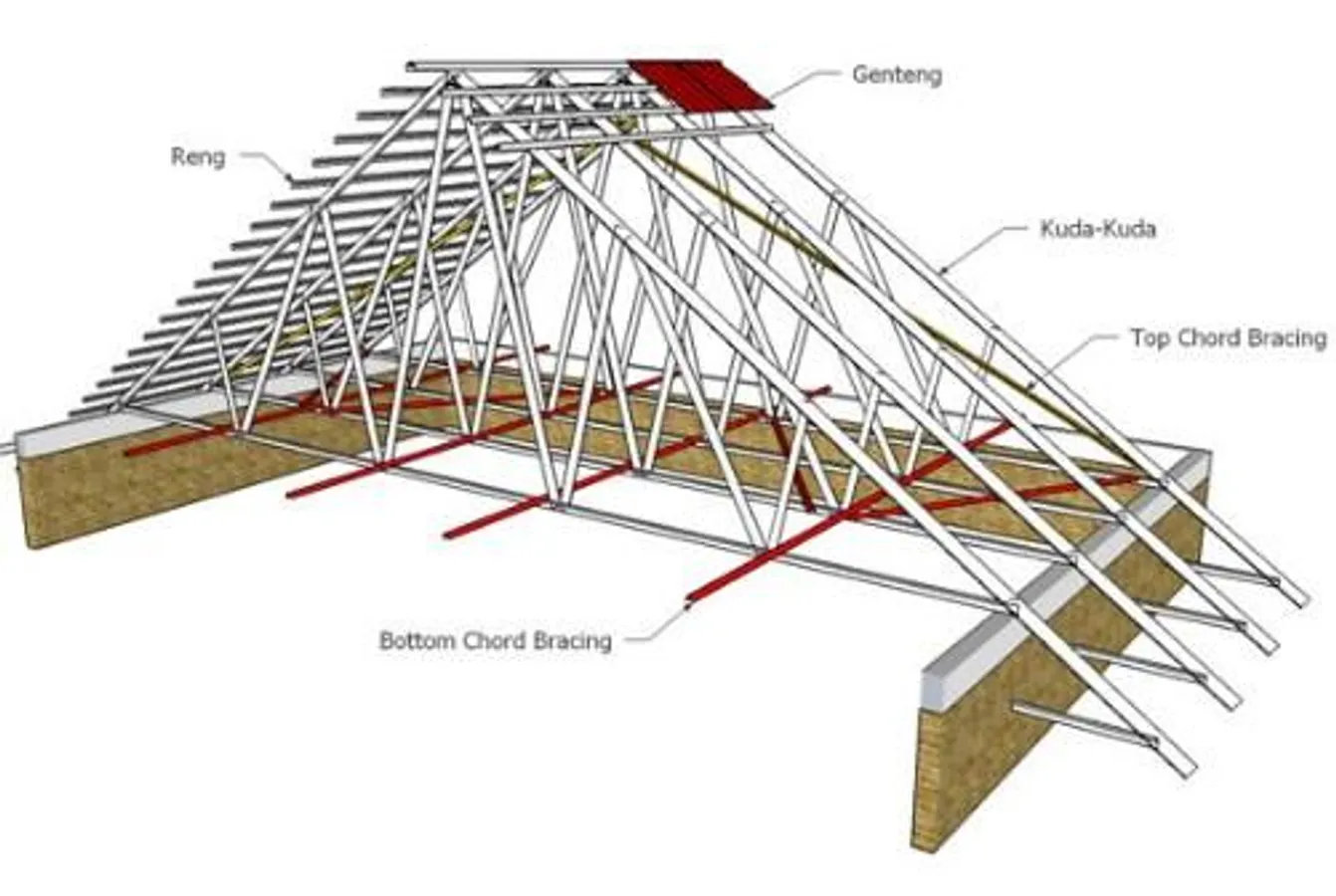 Lightweight steel roof frame is the development of new technology from the roof structure using steel construction that is strong but lightweight, we know beforehand that the name of steel is identical to its weight and size but over time it appears that mild steel technology. attract many people to use it. The steel used is a type of cold rolled coil (CRC) with a profile hood like the letters C or O. Here are some descriptions of lightweight steel roof truss.
