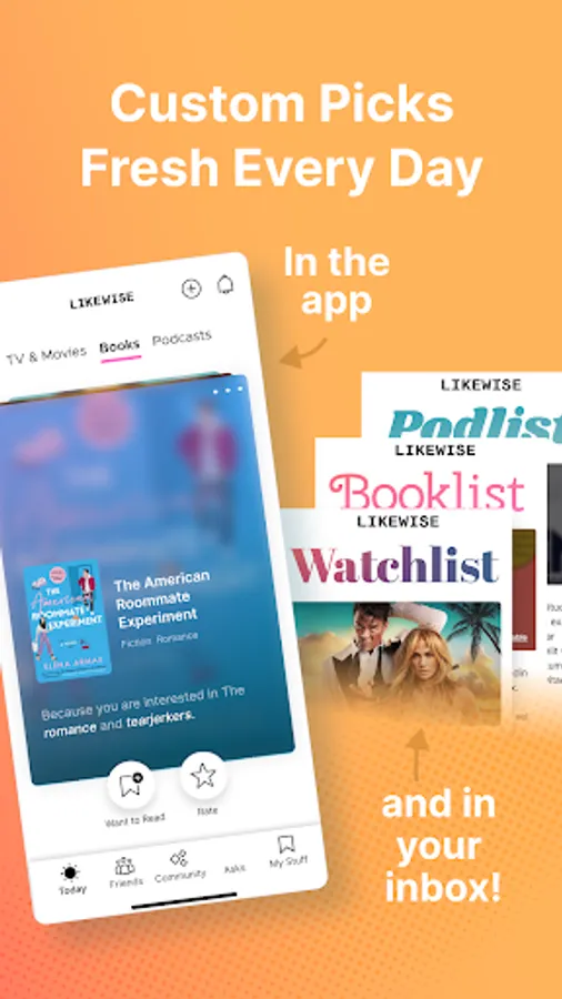 The Likewise app helps you quickly cut through the clutter by learning what you like. Along with help from Pix, your personal entertainment companion powered by AI, and real recommendations from real people, you can discover even more ways to find your next favorite book, show, movie, and podcast!