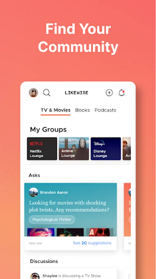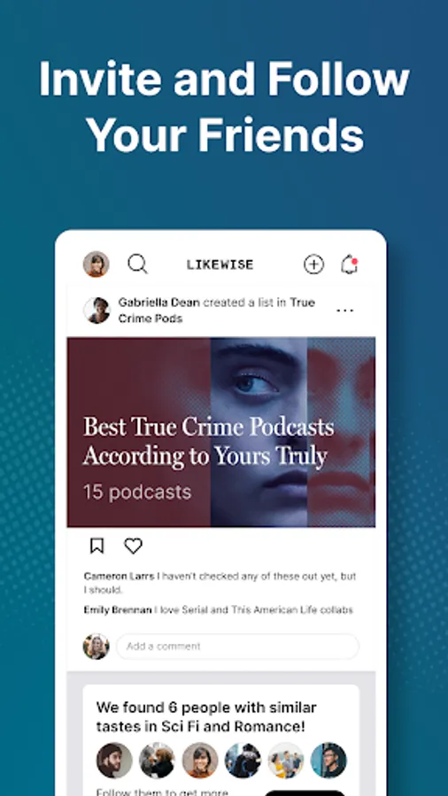Crowd Sourced Recommendations- Enthusiasts come together on Likewise. Browse and share recommendations and connect with like-minded people in groups you’re interested in. Invite your friends and family and never miss what they’re enjoying.