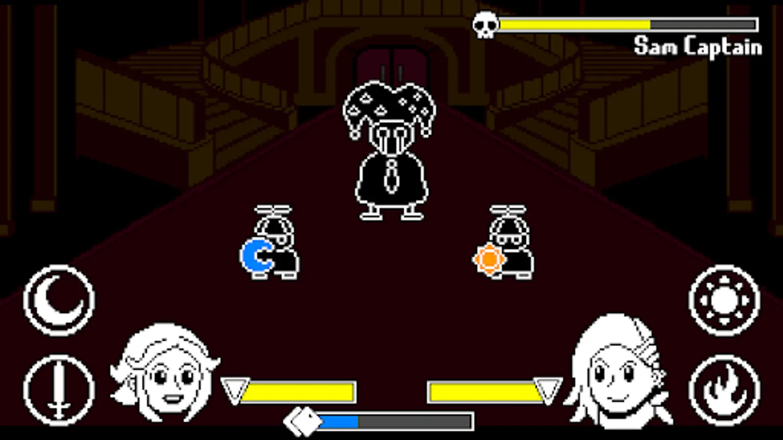 - Lightning-fast, rhythmic boss fights in a unique two-hero battle system.