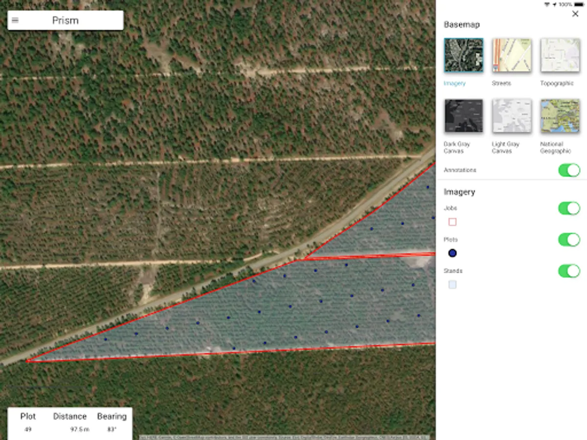 Another unique feature of Prism is built-in navigation, which harnesses the tablet's GPS system. Cruisers don't have to switch between applications or devices to know where they are in the forest and where they're going next. Basemaps can be downloaded to the mobile app for navigation at offline worksites.
