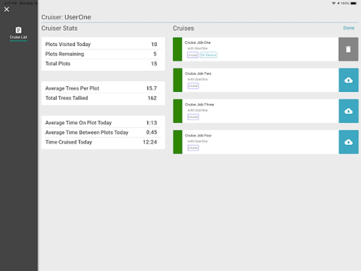 Forest managers can plan cruises in advance for diverse forest types, management goals, and environmental factors. Cruisers can instantly sync data from the mobile app back to the office when within Wi-Fi, cellular, or satellite internet service. Pre-determined plans are downloaded to the mobile app so foresters can execute cruises offline in remote locations.