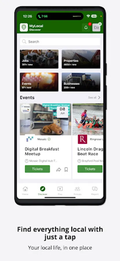 Groups: Join your local community and share the things that matter to you. Meet new local people and discuss the latest happenings in your area.