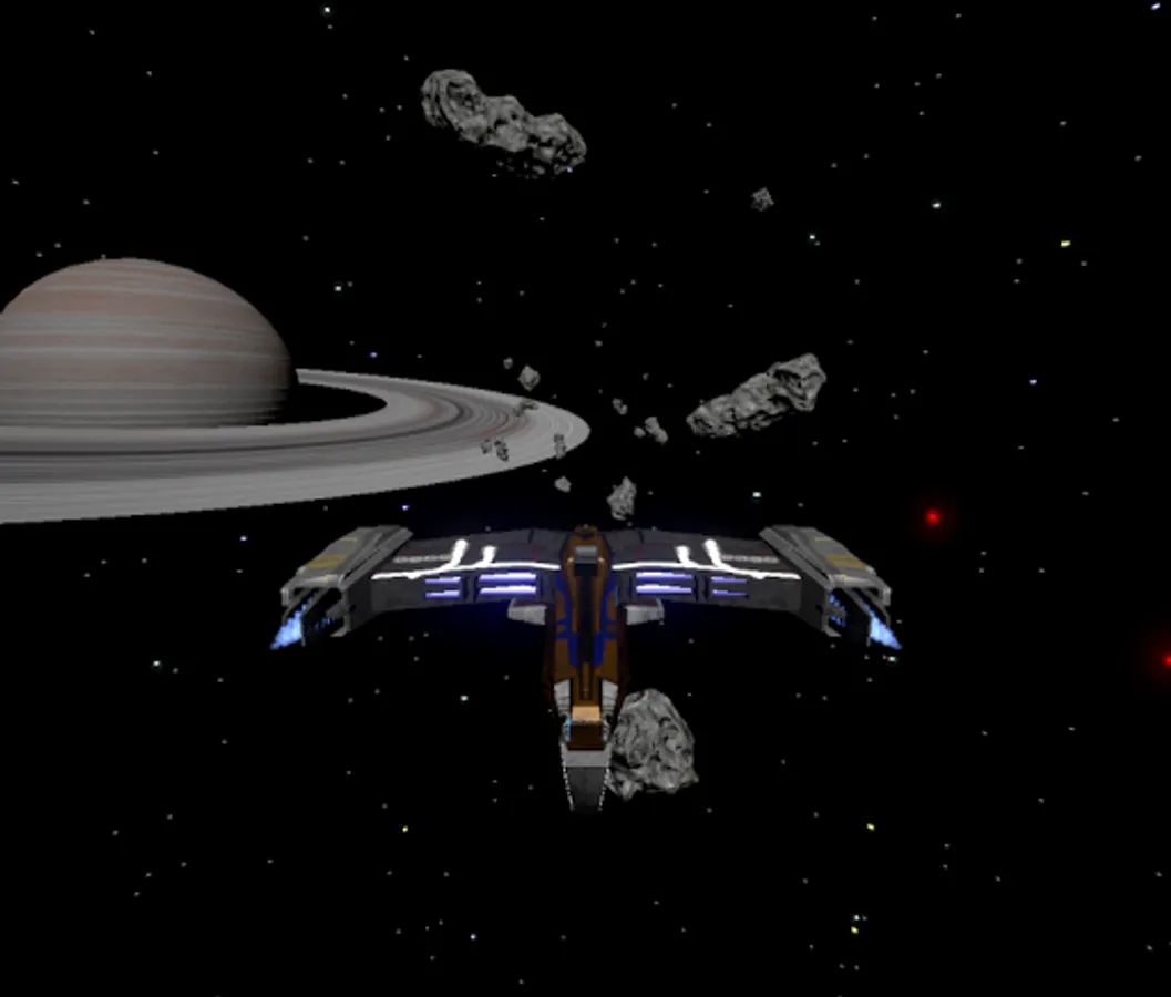Flying spacecraft through the middle of Saturn's asteroid belt,Avoid the meteorite in front of you and travel as far as you can.