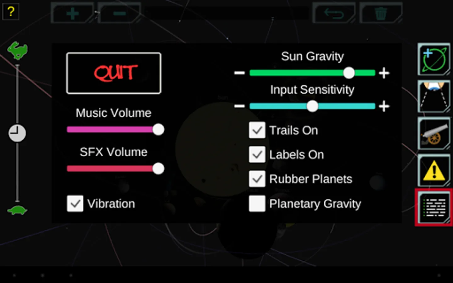 Increase or decrease the sun gravity, or activate Planetary Gravity, which gives each planet it's own gravitational field.