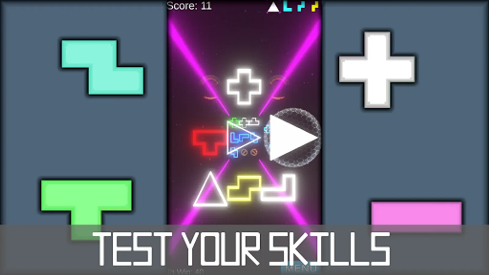 Test yourself in this endless runner, shapes game. You're given one shape that needs to correctly match one of the oncoming objects in rotation, colour and shape. With increasingly slim space to do so, you must use all of your brainpower to quickly identify the correct match and move it accordingly.