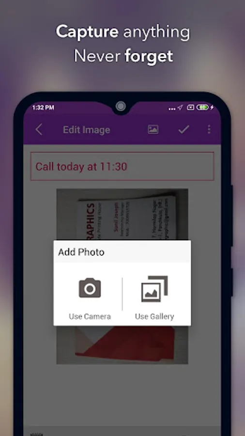 App helps your to save quick Notes, create Todo List, Attach Photos and Add awesome Locations, so you will never forget anything.