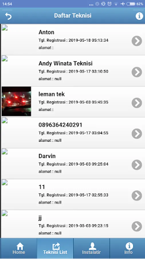 ListrikKu Instalatir untuk melihat jumlah teknisi yang sudah terdaftar atau teknisi yang baru melakukan registrasi .