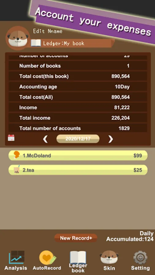 Record your expenses and income!
