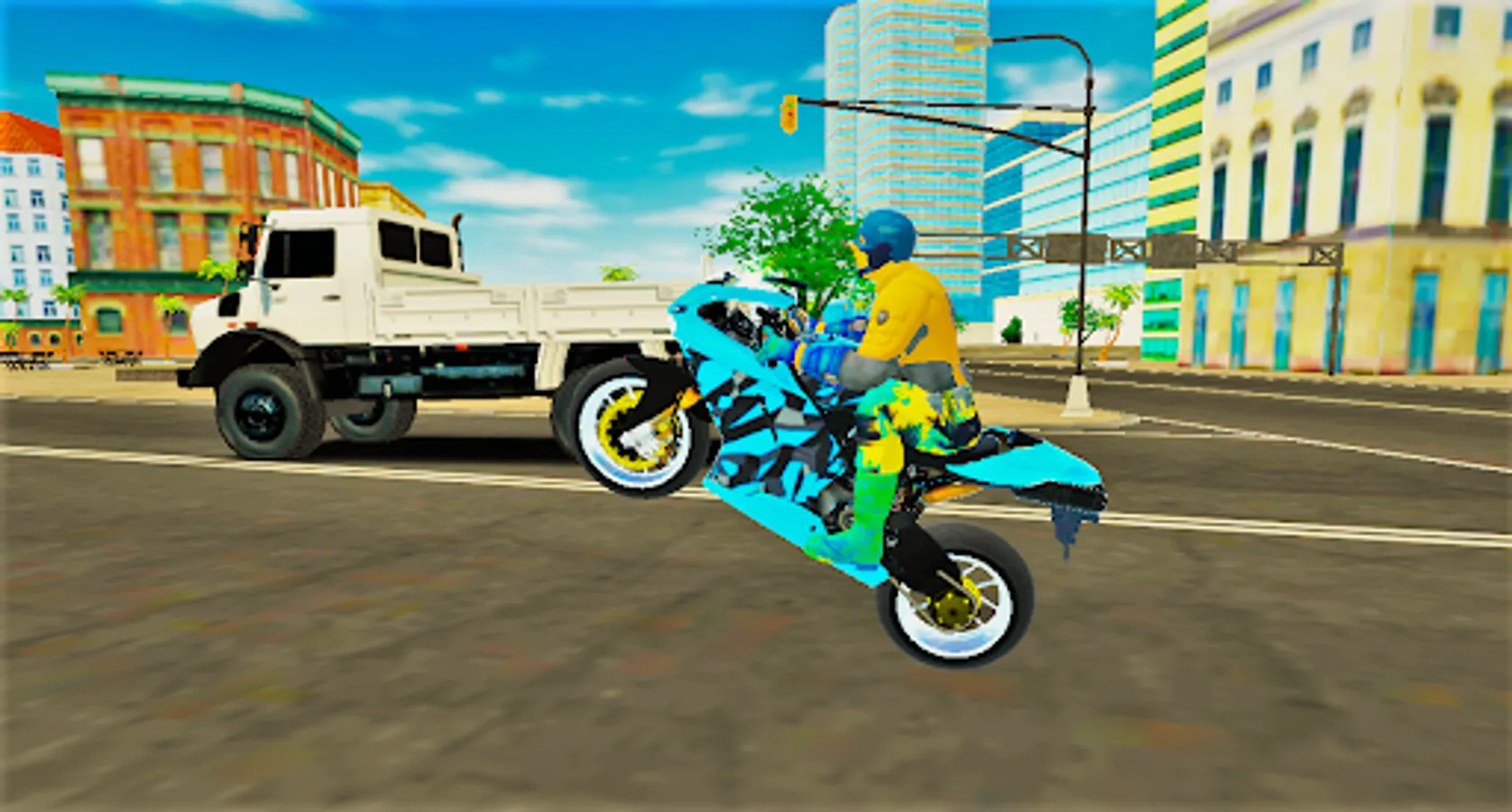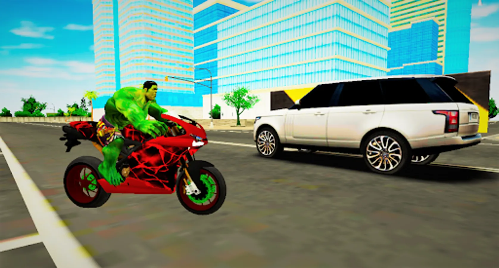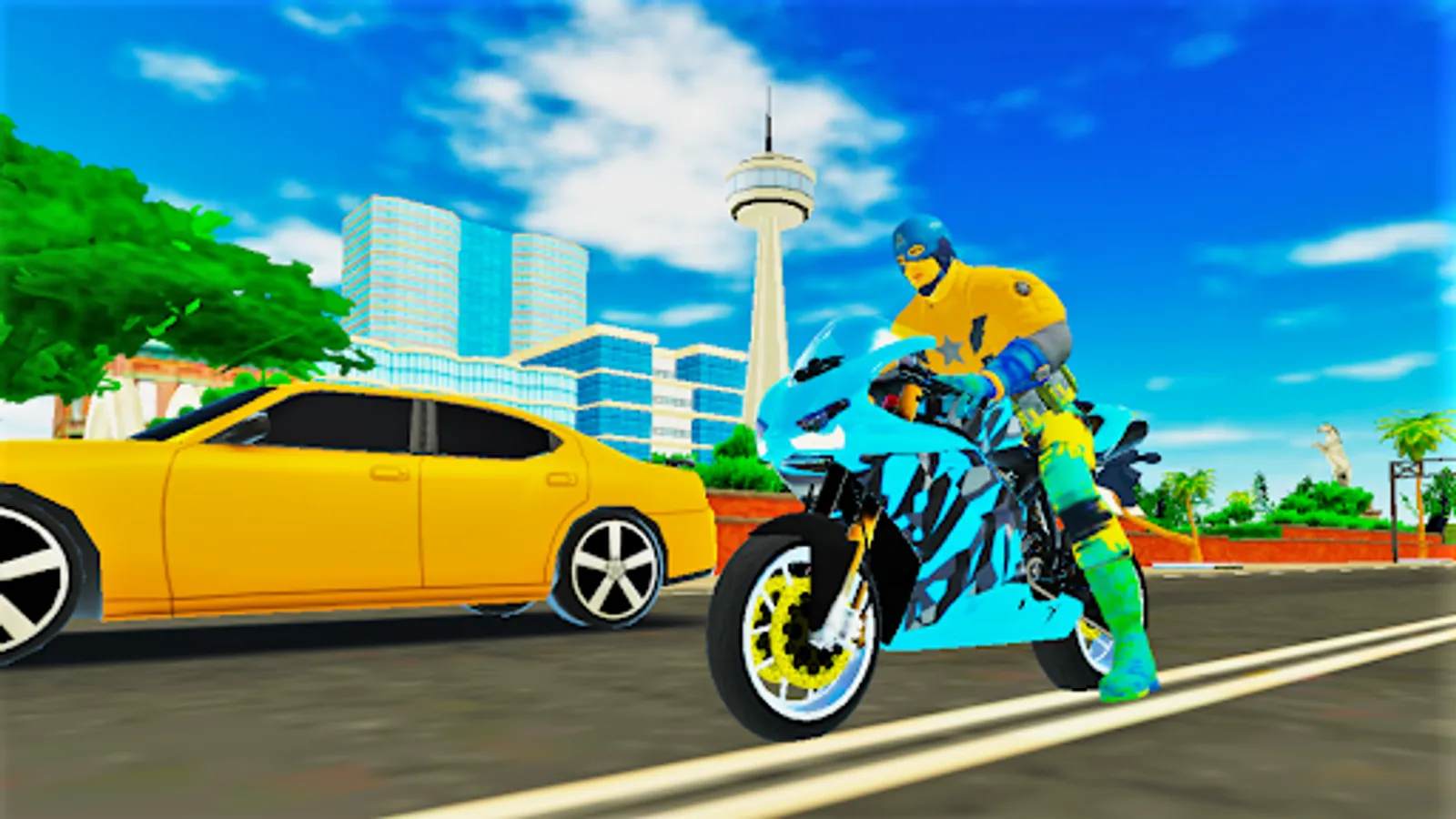 - Huge open world City Super Hero bike simulator filled with wide open roads and traffic to play with
