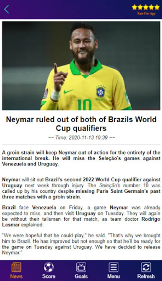 "Livescore Football" app provides you with the latest and comprehensive soccer news, live scores, match videos and highlights. With "Livescore Football" app, you can follow your favorite teams and players, get live scores and results from all the matches and competitions as well as the latest soccer news all around the world. Everything you need to know about soccer, all at your finger tips.