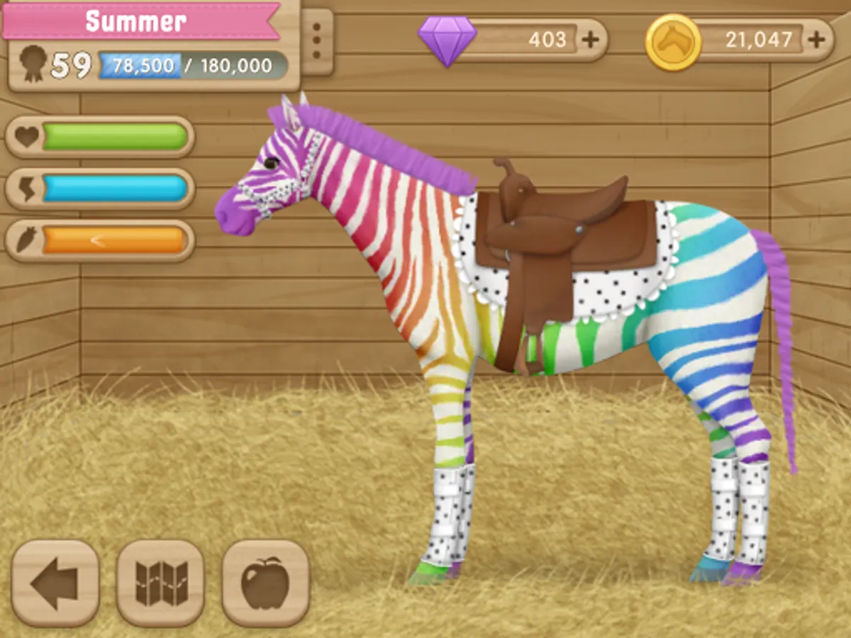As you care for your horses and win competitions, you’ll earn exciting rewards! Big money prizes, special foods to feed your horses, beautiful tack for show horses, speedy gear for racehorses, and best of all you can win gems!