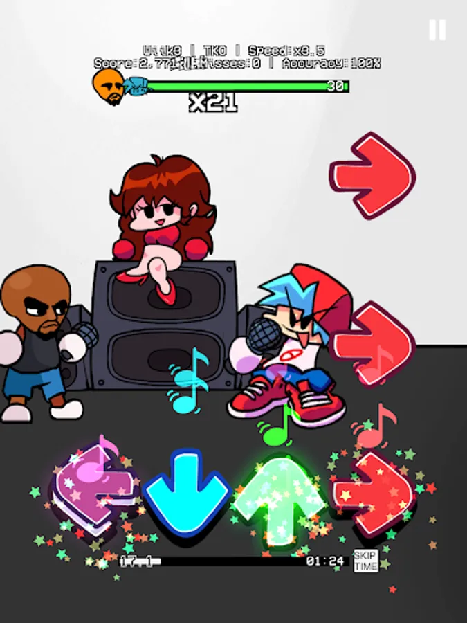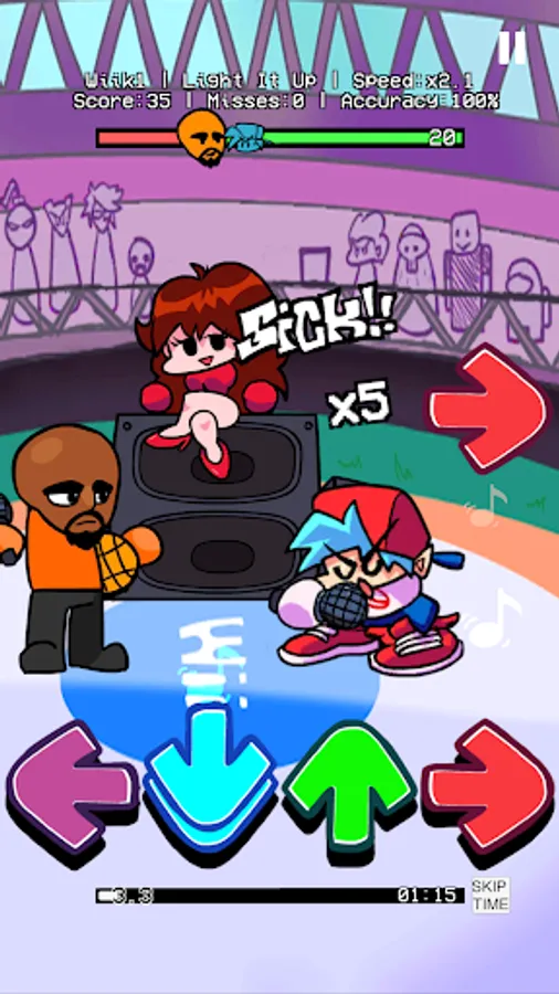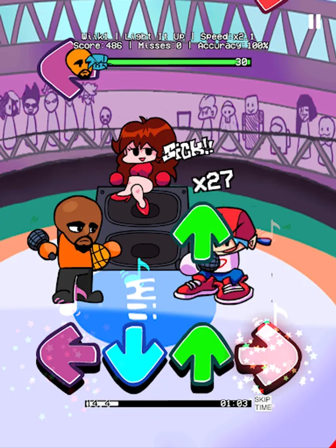 Just try to tap the arrow when they perfectly match to get the highest score. Feel Funkin rhythms! Dance with cg5! You’ll become champion.