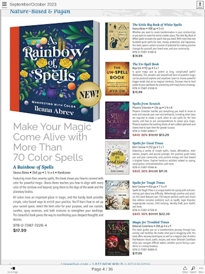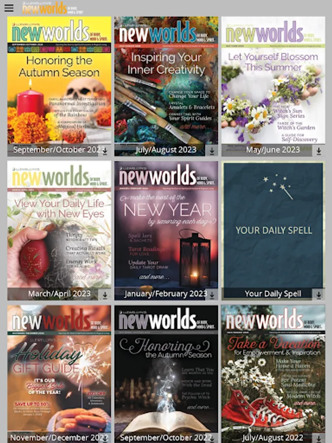 With Llewellyn's New Worlds app, you can browse and shop our diverse range of subject areas —Tarot, Divination, Magick, Occult, Alternative Health, Self-Help, Psychic Development, Astrology, Witchcraft, Paganism, and Paranormal—just as you would our print catalogs, but you now have access to much more. Just flip through the pages of a New Worlds catalog and tap a link to browse inside a book or access our free articles, encyclopedia, author interviews, additional images, and blogs. Plus, just click on our Facebook, Twitter, and Instagram accounts to join the conversation.