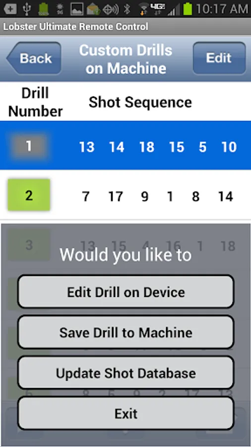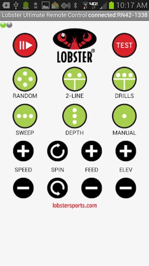 The Lobster Ultimate Remote Control offers the unique ability to create, edit, and save customized drills wirelessly (compatible with the Grand V, Grand V LE and Phenom 2 models only). This cutting edge remote control app not only commands every single feature on your Lobster tennis ball machine, but now you can create, alter, save or delete drills directly from your Android phone....no more programming the drills at the machine only. You can create up to six custom court drills with each drill having up to six sequential shots. Assign an independent ball speed, ball spin and ball feed rate for each and every shot within the custom court drill created. The options are endless!