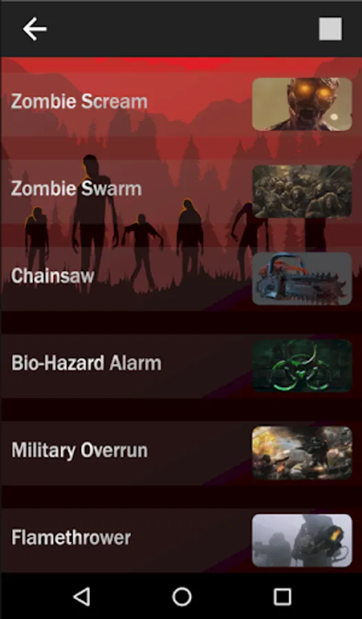 Listen to the scream of a crazed zombie or the flesh hungry growls of a zombie herd chasing after you.