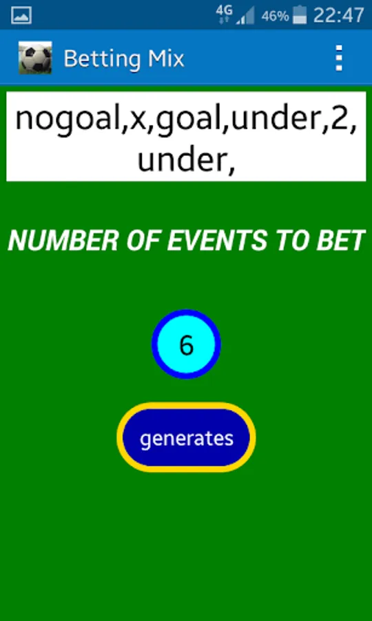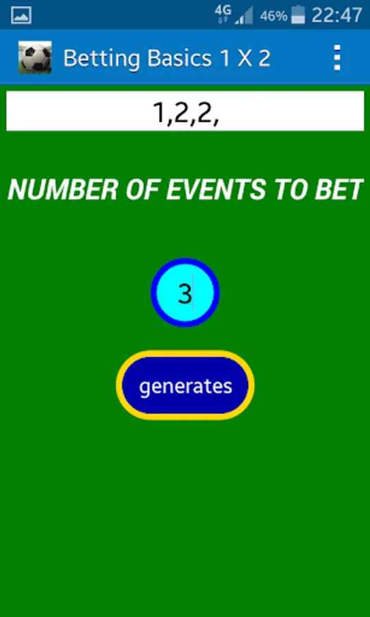 then when you see the screen of the generator put in the blue circle the number of events on which to bet and press the button generates