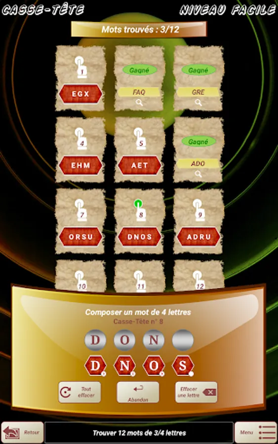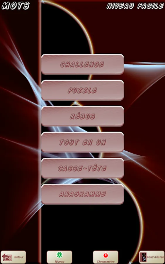 - 6 games available: Challenge / Puzzle / Rebus / All in one / Puzzle / Anagram.