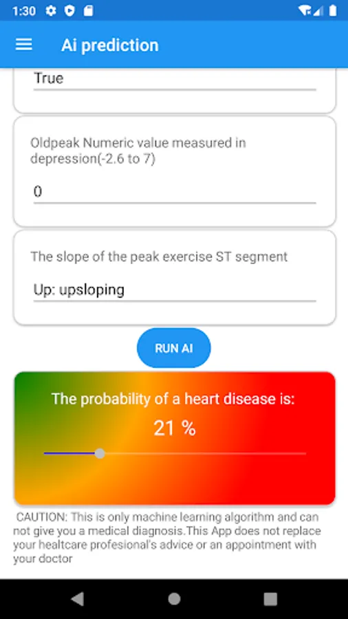 CAUTION: This is only machine learning algorithm and can not give you a medical diagnosis.This App does not replace your healtcare profesional's advice or an appointment with your doctor