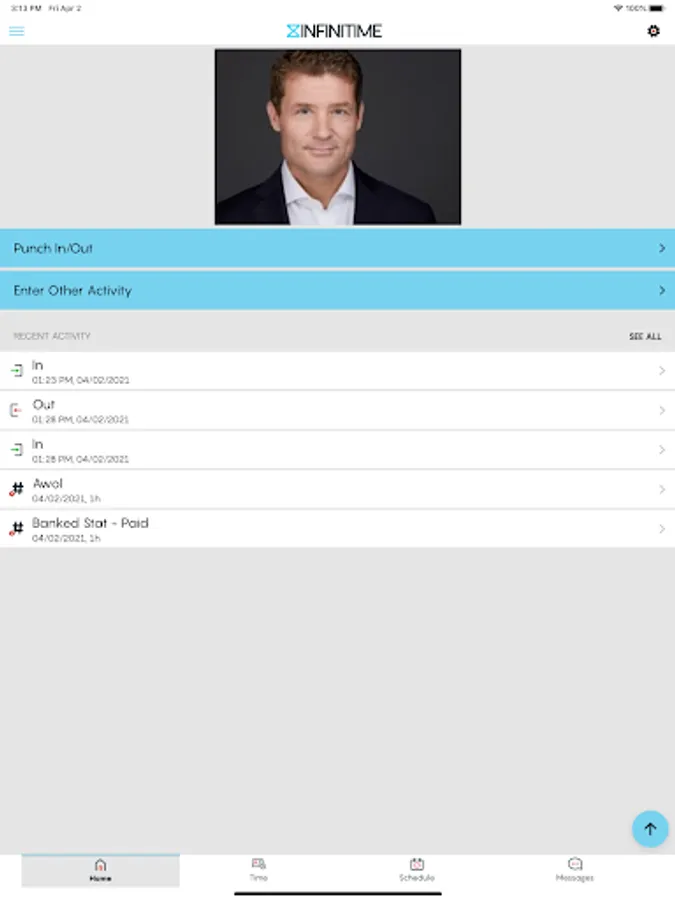 InfiniTime Online Mobile application that allows employees to punch in/out, review time cards, review schedules, review benefits, and much more.
