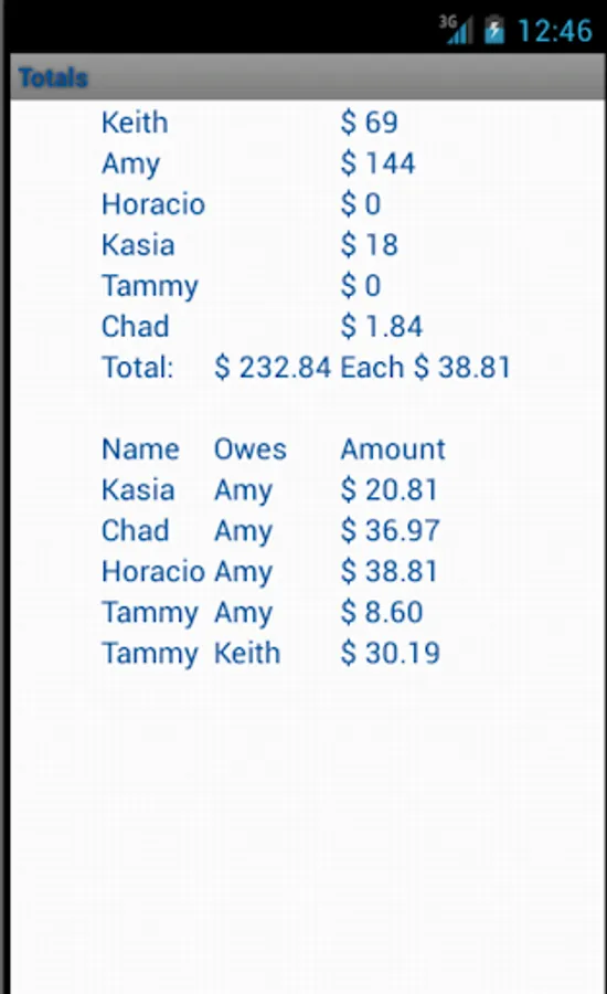 Email the totals to everyone at any time, especially when trip is over so everyone knows who owes who how much.