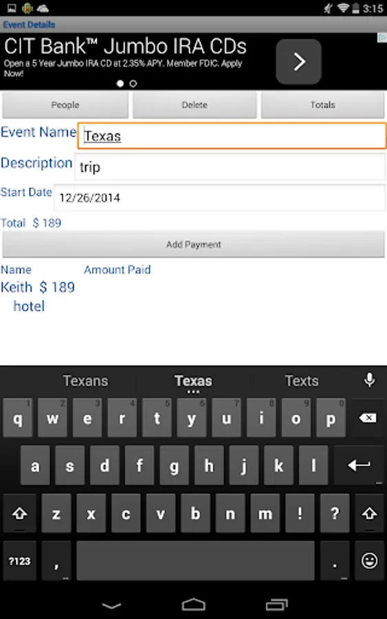 For Spring Break or just a weekend get away with friends, don't let who's paid for what get in the way of enjoying the trip. Split the Trip keeps track of who spent what and can give reports on demand to see who's paid how much. Then at the end of the trip it will report who owes who how much and it can be shared with everyone on the trip.