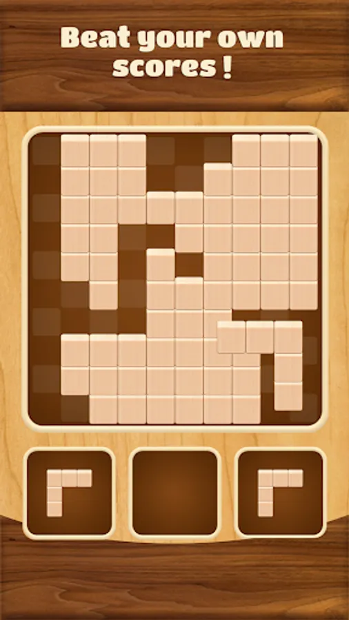 Place the blocks on the board and arrange them to fill the vertical and horizontal lines. Develop strategies to keep on going as long as you can and beat your best scores.