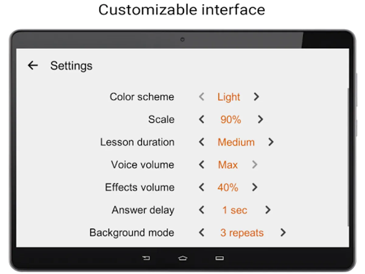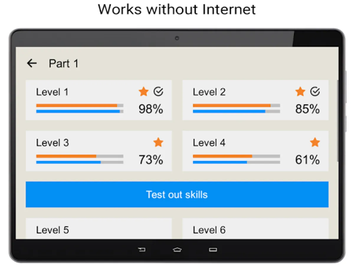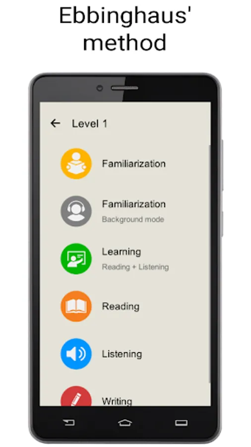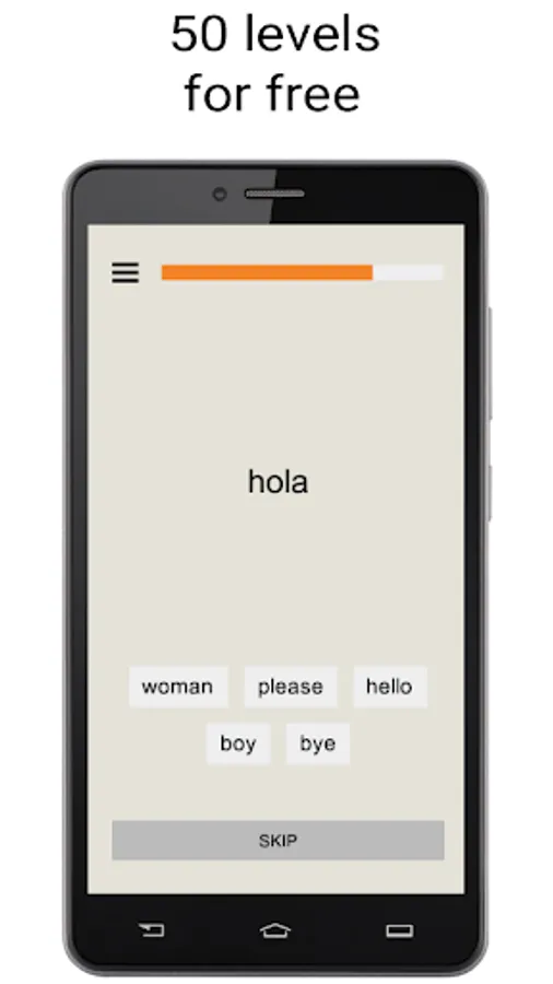 The application has an extensive vocabulary created on the basis of the frequency dictionary of the Spanish language - a set of words sorted by frequency of use in speech, where the most common and popular Spanish words are located at the top of the list. For convenience of study the entire vocabulary is divided into groups of words (levels) balanced by the number of parts of speech. The teaching process consists of several stages: