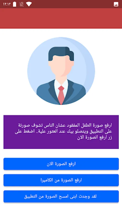 The first case: You found a lost child, download the application.. Make a quick login.. (does view all the pictures of the missing children) Look at the child with his name through the search lens (after asking about his name, of course).. If you find the child's picture on the application.. Photos of the child and upload his photo to the application.. Enter the data modification screen and enter the name of the missing child (after asking about his name, of course) and dos Edit