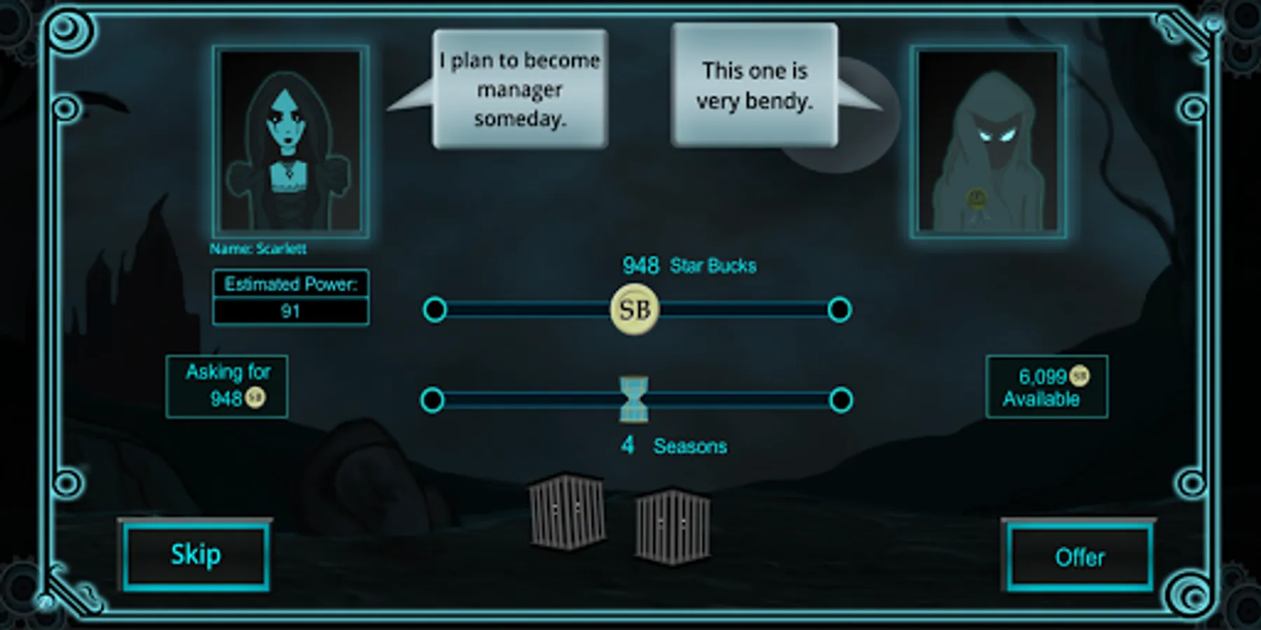 Space Leagues is a fantasy management game that has a unique art style, in depth lore and over 120 unique characters with evolving personalities. Your job is to recruit and manage a team of fighters that will compete in a gladiator style league system. You will need to balance the wages for your team, negotiate contracts and place each fighter into one of five positions. Battles are real time and each fighter will make their own decisions during combat. Your fighters will be graded on how well they perform. Win your league and be promoted, maybe even earn a few awards at the end of the season. Lose and… well, just don’t lose.