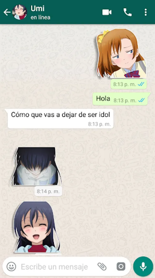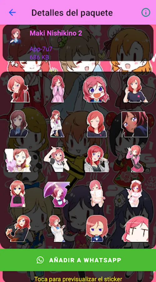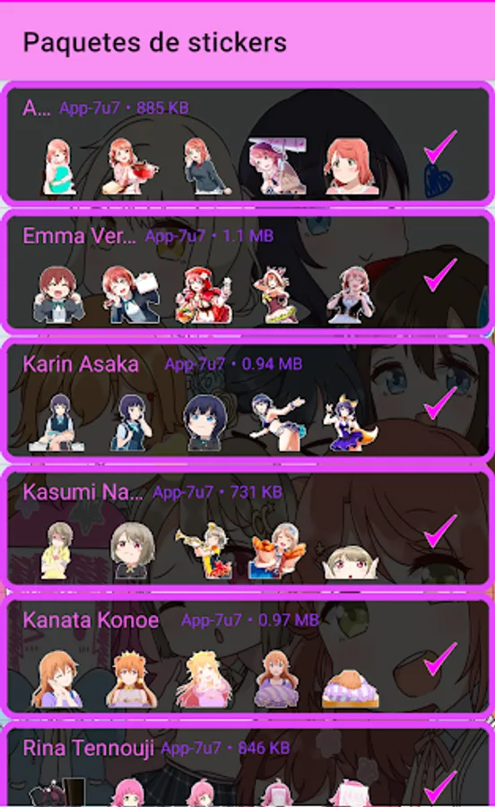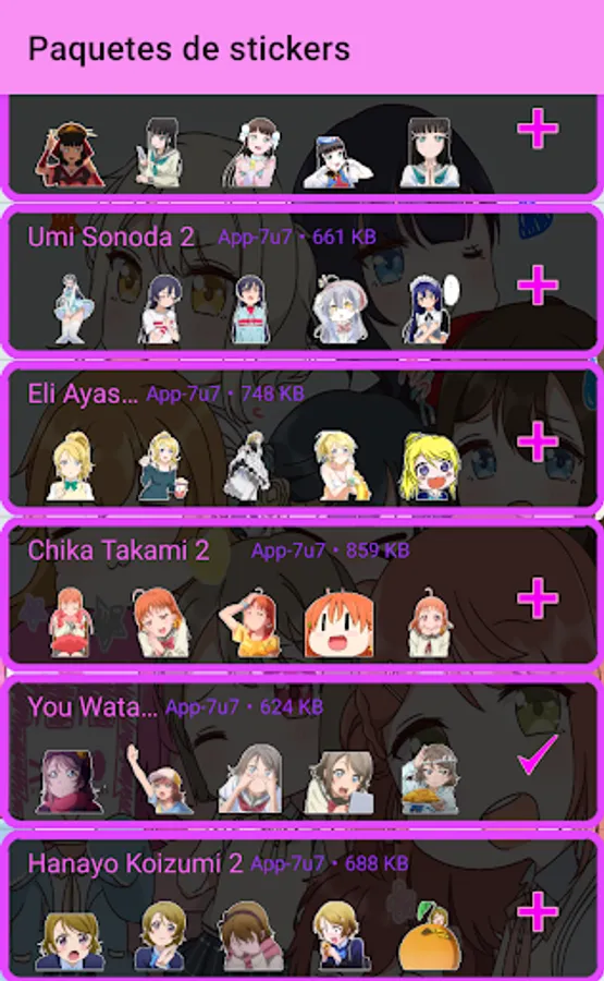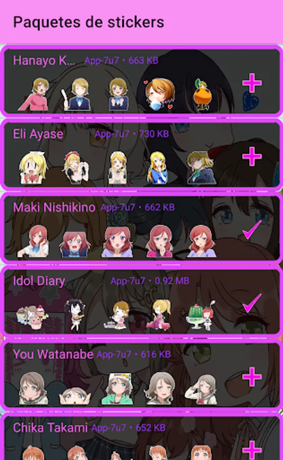 Enjoy this great application of stickers of the most beloved Idols of anime and remember not to uninstall this App to receive more updates in the future to put more stickers.