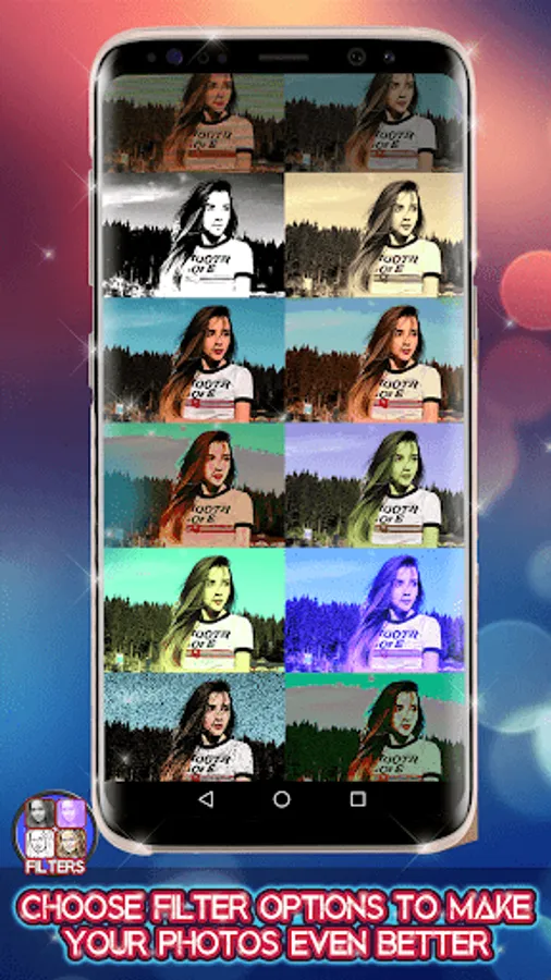 Do you like photo stickers, photo frames and makeover apps? Would you like to have a photo editor app with beautiful “photo filters and effects”? If you wish to make perfect selfie pics, you will need the picture editor on the market. That photoediting app is called Camera Filters And Effects - Photo Editor Pro and it has a fun collection of color filters for pictures and “cool effects for pictures”. Download this photo creator software and start picture editing now. You can take a photo with your selfie camera or use an image from gallery. Add photo overlay effects and filters for selfies and make beautiful photography art. You will see, it is easy to edit images with the art image editor “Camera Filters And Effects” - “Photo Editor Pro”. Do not wait, download this photo creator and editor today and make photo collages and photo montages!