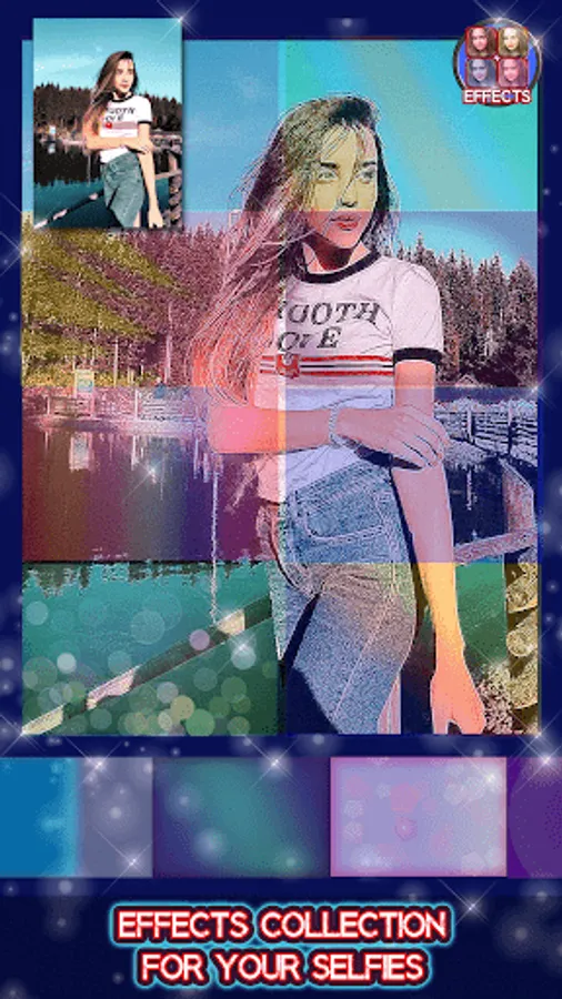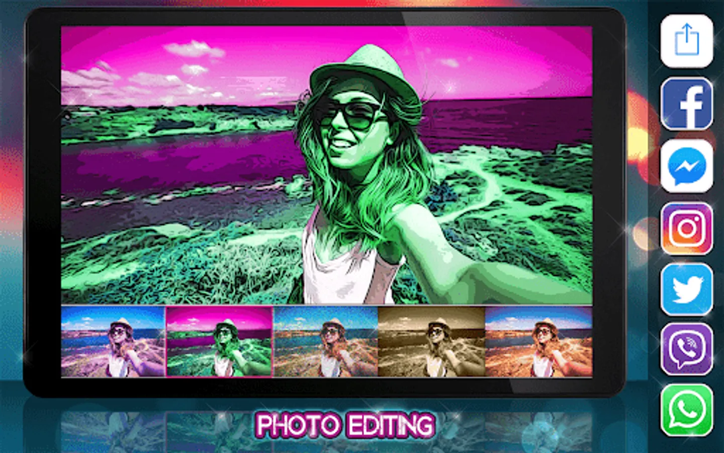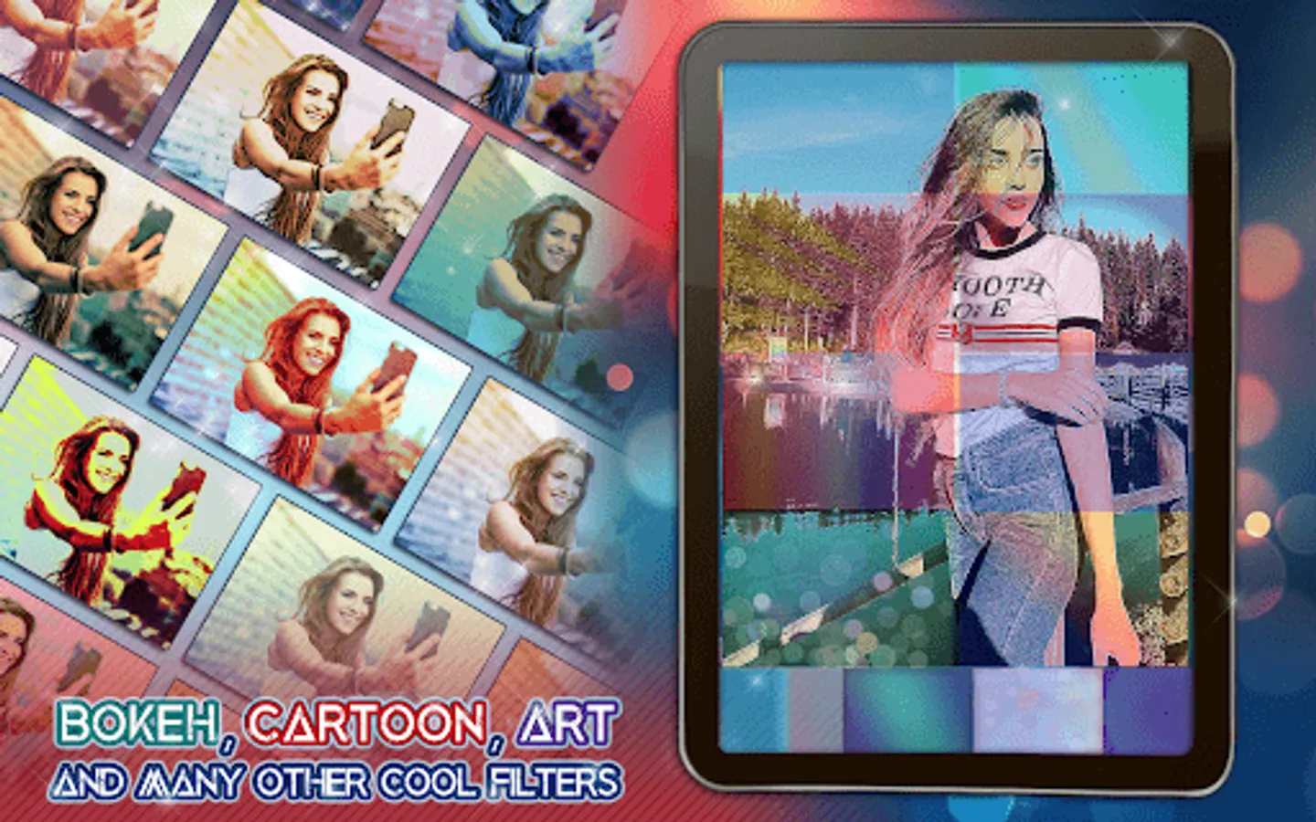 People who like picture frames, stickers and cartoon effects for pictures, and think splash photo editor is cool, should try this amazing photo editor pro called Camera Filters And Effects - Photo Editor Pro. This “picture editor app” is the photo effect editor. You can take an image from gallery or use an effect camera to take a pic. Snap a pic with your selfie camera and start photoediting. You can choose from many filters for selfies and effects for pictures. Make photo collages and photo montages, decorate your screen with a unique wallpaper. This beautiful photo maker has everything you need for picture editing. Download the “photo lab” and enjoy the latest art effects for photos.