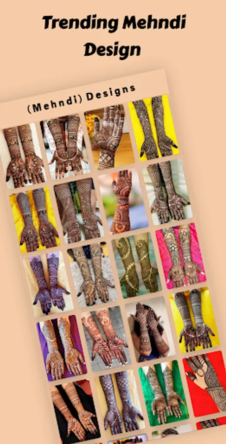 Mehndi Design 2023 has all latest mehndi designs for all cultures. This app includes pakistani mehndi designs, indian mehndi designs, arabic mehndi designs, indo-arabic mehndi designs, african mehndi designs, moroccan mehndi designs, western mehndi designs, indo-western mehndi designs etc.
