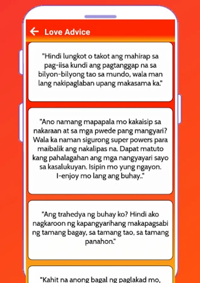 Having Love Problem and need some advice for your friend, family or yourself? Then here’s the app for you!! Love Advice In Filipino