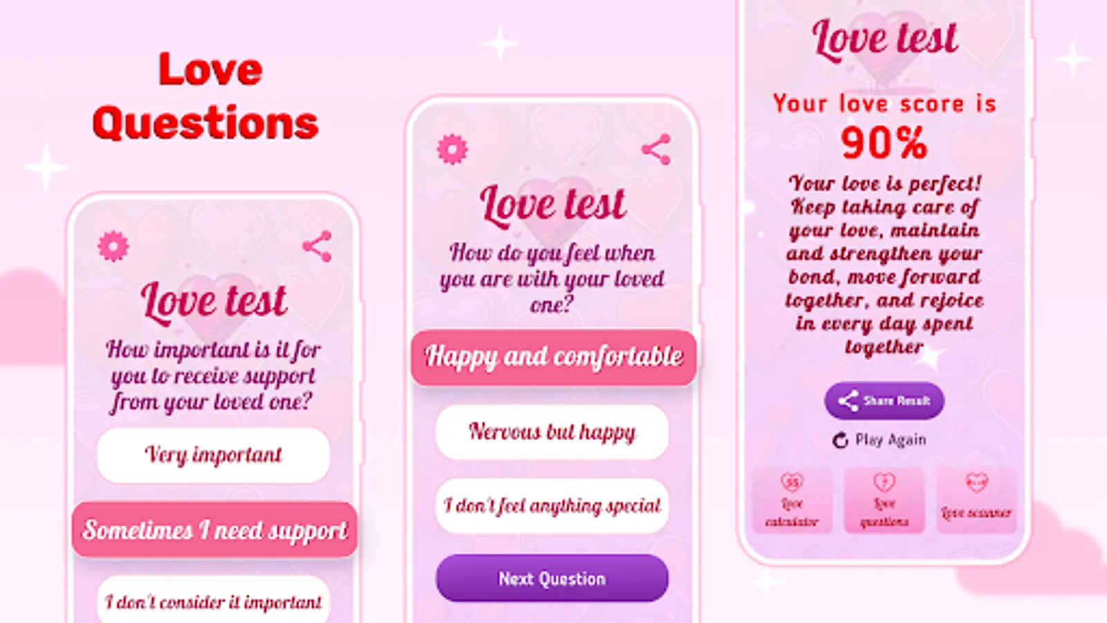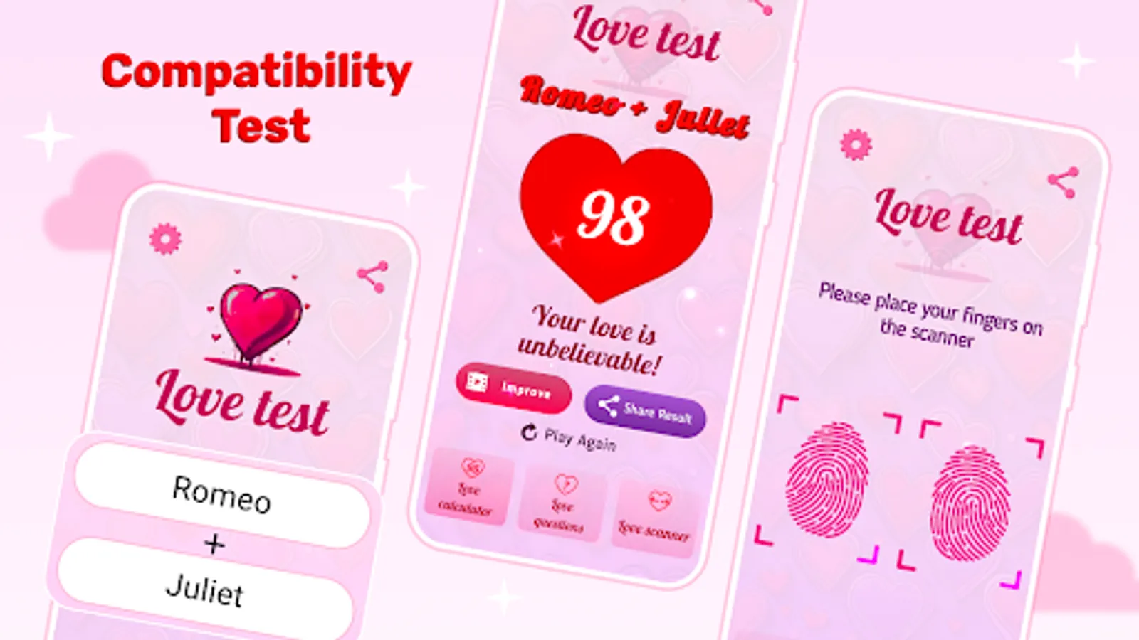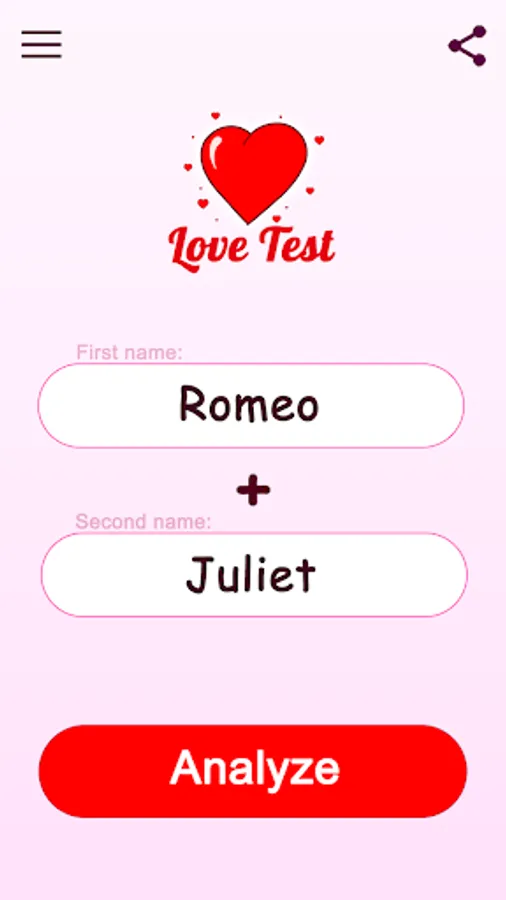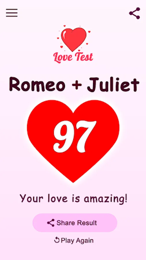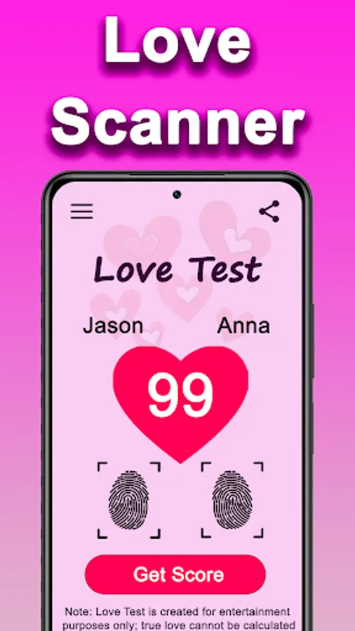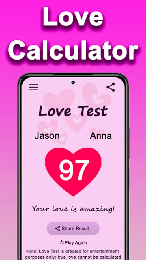 Remember, this app is all about fun and entertainment. While it’s not a scientific love test, it’s a playful way to spark conversations about love, compatibility, and relationships. Enjoy the experience and take the results lightly!