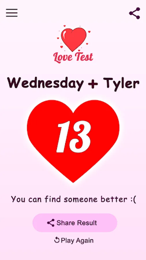 Using this love tester is easy, and with just a few taps, you can instantly find your love compatibility score!