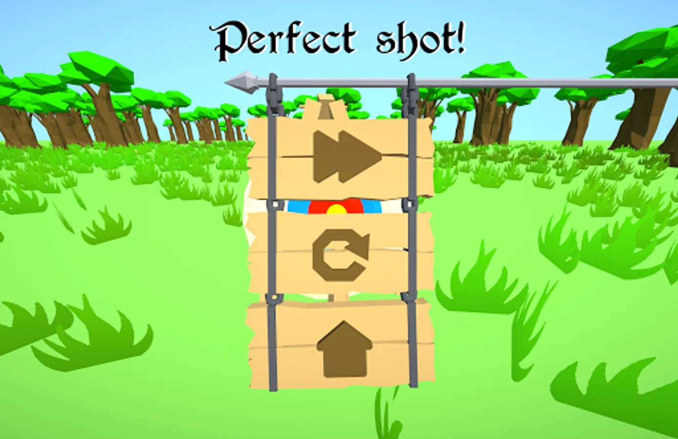 Fly through the air in the form of an arrow in this short puzzle-action game. Shoot through apples and bottles and try to hit them all!