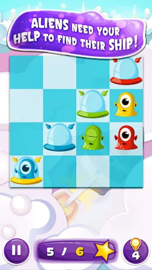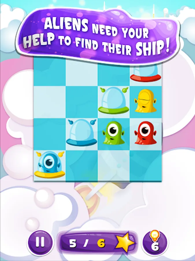 Shuttle Shuffle is a puzzle game where aliens, scattered after a chaotic landing, have to find their shuttle back.