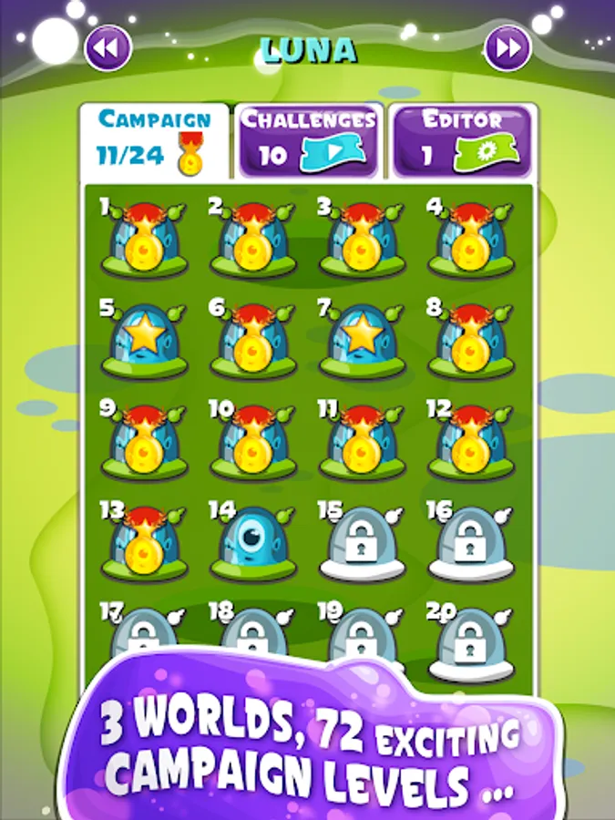 - Neverending puzzling : 72 campaign levels and hundreds of user levels created every day