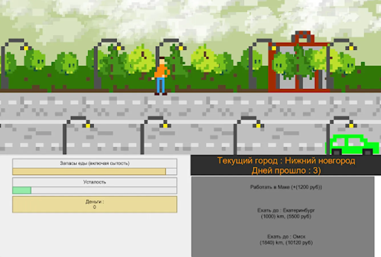 Tired of a large city, the student decided to go on a trip! The path lies east towards the rising sun. Help the hero get to his dream!