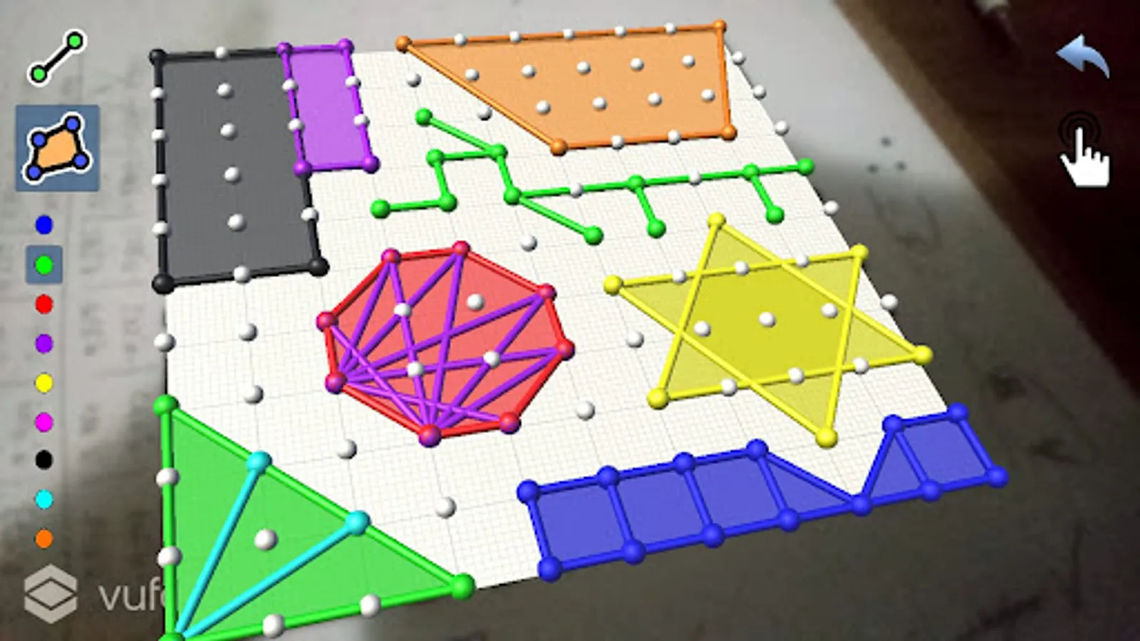 In the Geoboard module, you have at your disposal a virtual geoplan to which you can add lines, plane and three-dimensional figures.