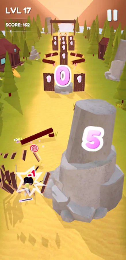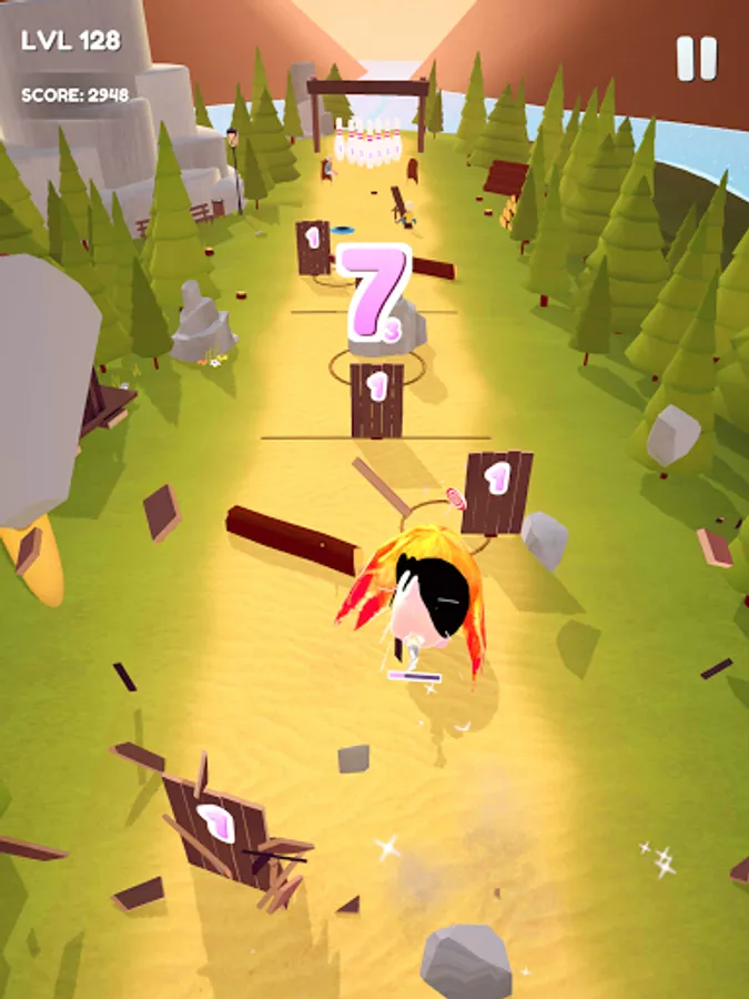 Bang your head against obstacles to create a pathway through the forest towards the finish. Upgrade you character and become the coolest person in the park!
