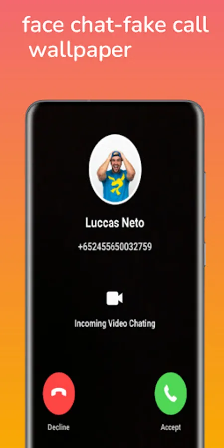 Lucas Neto Fake Video Call it's a prank and is not an official app, just for entertainment and only for joke, it a 100% fake and fictional simulation just for prank your friends.