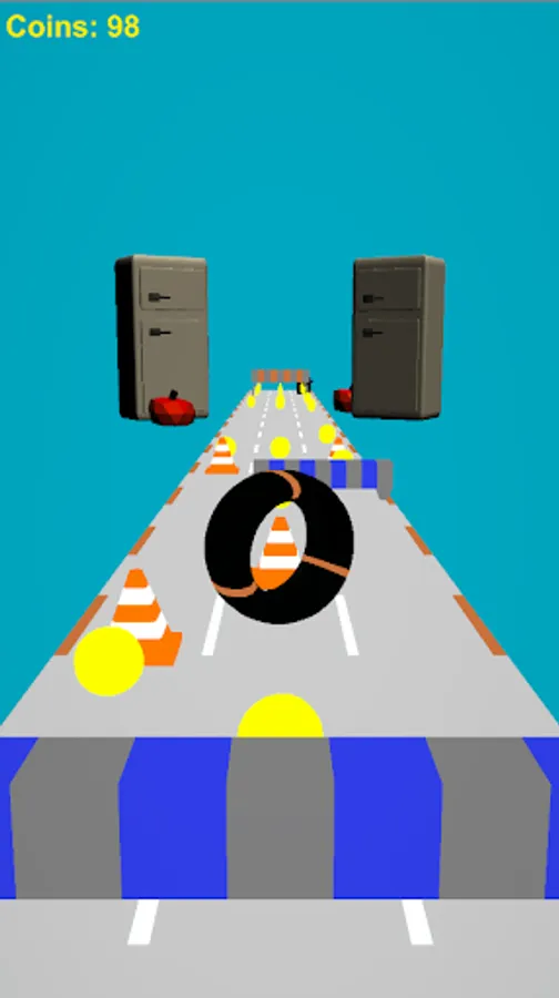Ren zo ver mogelijk over de baan met obstakels en verzamel onderweg munten! Pas op voor bewegende objecten!