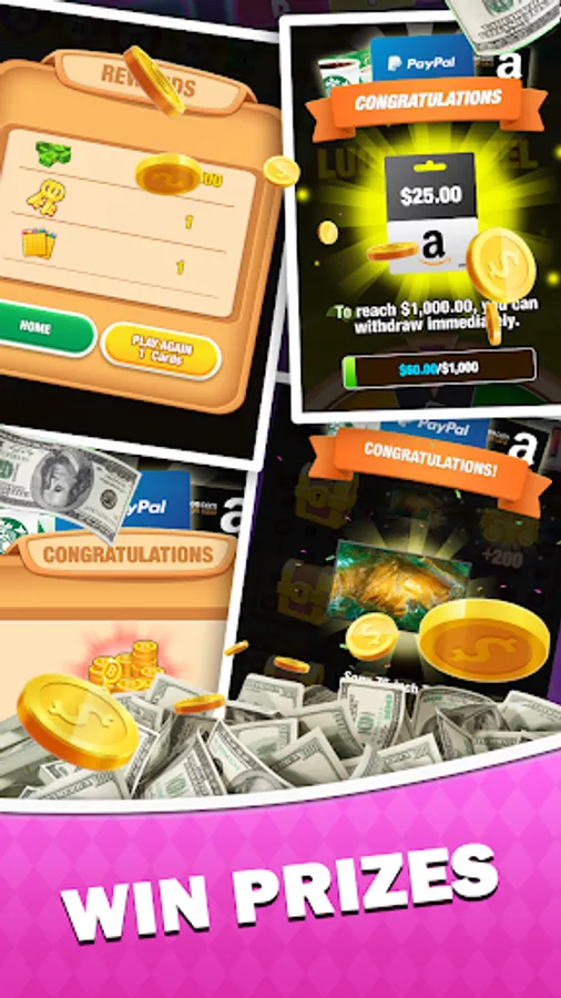 ● Spin the lucky wheel to win real money cash jackpot rewards.