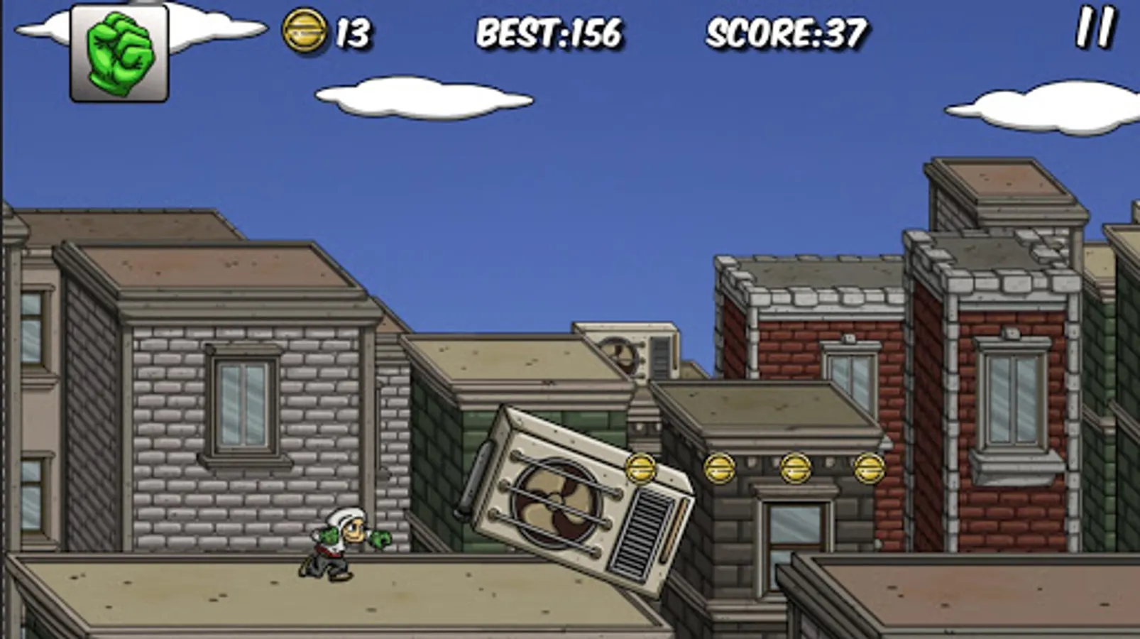 Help AJ jumping on the roofs evading obstacles and enemies!